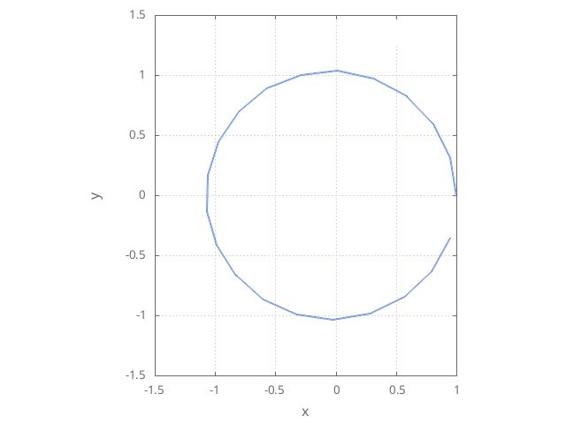 We can estimate the error by computing the initial distance from the Sun and comparing to the final distance from the Sun. The orbit is circular, so it should be constant.