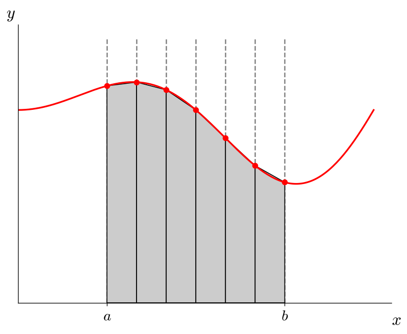 where the number of intervals you divide \([a, b]\) into, \(N\), is defined such that \(N = (b -a) / \Delta x\).
