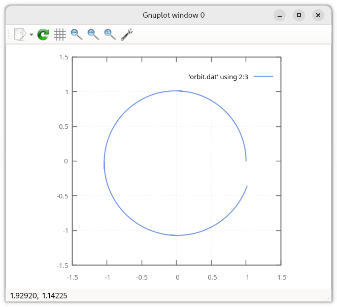 Let’s consider an example of integrating the orbit of Earth around the Sun (we’ll consider the mass of the Earth to be tiny compared to the Sun so we can neglect the Sun’s motion around the center of mass).